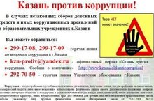 · kzn-protiv@yandex.ru - официальный портал «Казань против коррупции. Сообщи о взяточнике» (http://www.kzn.ru/old/anticorruption)