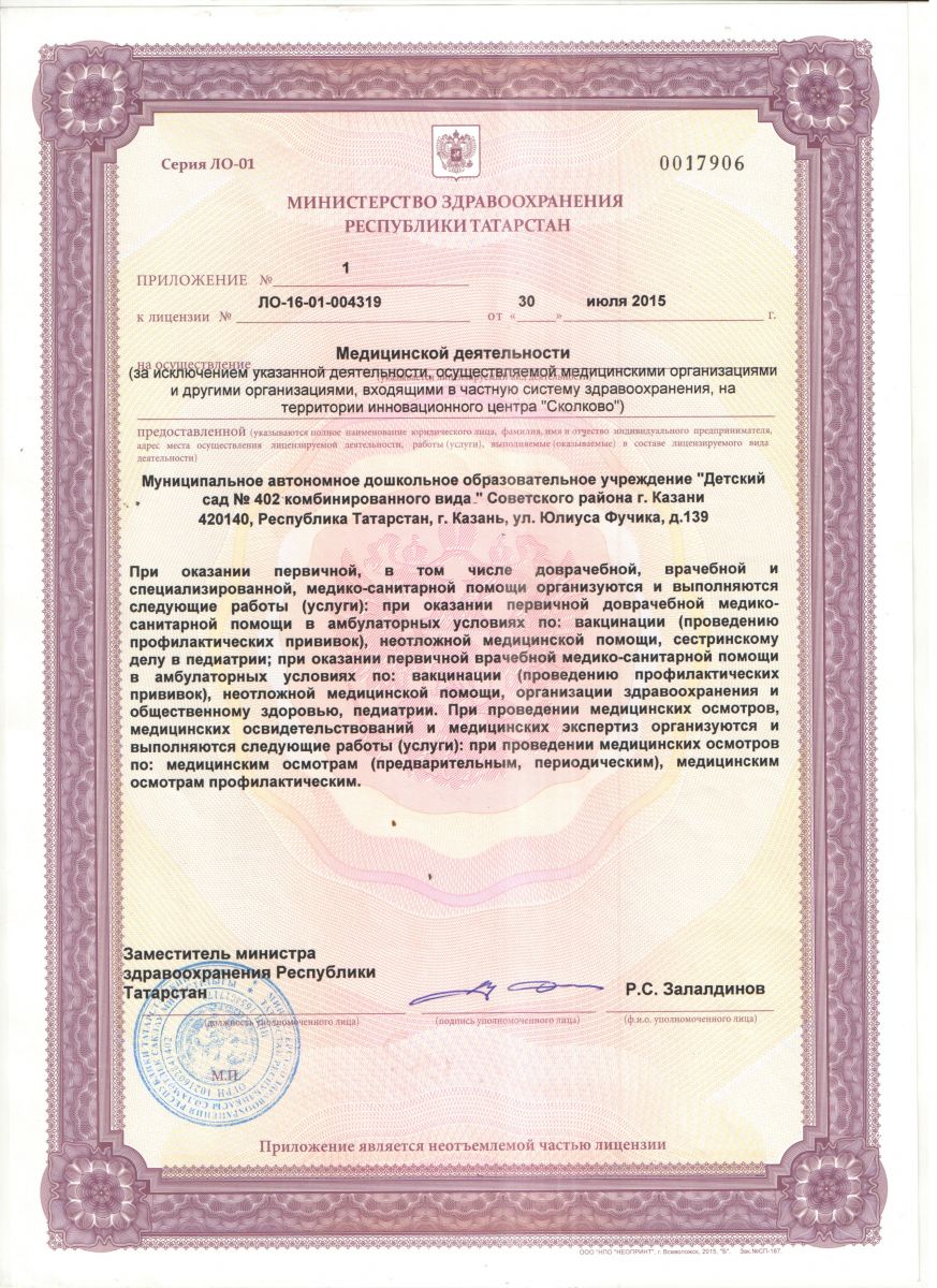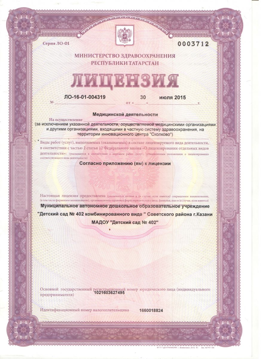 | Короткое название: | МАДОУ "Детский сад № 402 комбинированного вида" Советского района г.Казани |