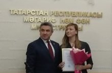 Сегодня Министр образования и науки РТ Хадиуллин Ильсур Гараевич, поздравил победителей регионального этапа IX Всероссийского конкурса "Воспитатели России". Поздравляем нашего педагога Комиссарову Татьяну Рашатовну с победой в номинации "Лучшая методическая разработка по физическому развитию, воспитанию и оздоровления дошкольников". Желаем ей дальнейших творческих успехов и удачи!