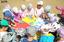 Педагоги совместно с детьми создали "Летнюю дорожку здоровья".Она выполнена в нетрадиционной технике, с использованием подручных и безопасных материалов (пластиковые крышки от бутылок, пуговицы, морские камни и др.). Удобство составляет то, что секции данной дорожки здоровья можно менять между собой, заменять компоненты на другие, более новые и необычные.