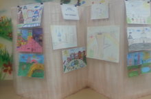 В вестибюле нашего детского сада выставка рисунков "Казань - город будущего!"