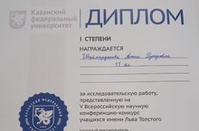 Поздравляем Шаймарданову Алину и Мамадалееву Гульназ с заслуженной победой во Всероссийской научной конференции учащихся имени Льва Толстого, желаем не останавливаться на достигнутом, всегда двигаться вперёд, покорять любые вершины. Пусть на пути к успеху Вам всегда светит счастливая звезда!