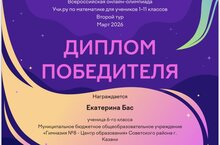 Мы гордимся успехами наших учеников! Поздравляем ученицу 6 Д класса Бас Екатерину с блестящей победой во 2 туре олимпиады по математике на образовательной платформе Учи.ру! Пройти второй тур — значит проявить не просто знания, а настоящую математическую хватку, логику и умение решать нестандартные задачи. Это серьёзная победа, которая подтверждает высокий уровень подготовки и упорство нашей ученицы. Желаем Кате не останавливаться на достигнутом, новых побед в следующих этапах и лёгкого решения самых сложных примеров! Пусть этот успех станет стартовой площадкой для будущих олимпиадных вершин.