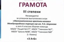 Командная работа — это секрет, благодаря которому обычные люди достигают необычных результатов. Рады сообщить, что ученики нашей гимназии в командной работе совместно с учащимися МБОУ «Лицей №177», МБОУ «Школа №98», МБОУ «Гимназия №7» заняли призовое мест в игре «Математические крестики-нолики» Международного турнира игр имени П.А.Широкова.