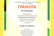 Наша команда заняла 3 место в игре "Математические бонусы".