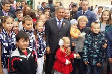Сегодня учащиеся, родители и педагоги нашей гимназии приняли активное участие в открытии спортивной площадки на улице Ноксинский спуск и сквера Чишмяле. Почетными гостями праздника стали и.о. президента РТ Миннеханов Р.Н., мер города Метшин И.Г., и глава Советского района Гафаров Р.Г.
