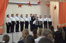 Сегодня наша гимназия встречала народный ансамбль ветеранов ВМФ "Экипаж - одна семья". Ветераны выступили перед учащимися 7-х классов с концертной программой посвященной 70-й годовщине Победы в ВОВ 1941-1945 гг. Ребята с замиранием сердца наслаждались литературно-музыкальной композицией, состоявшей из двух частей "Ветераны рассказывают о войне" и "Служить России". В конце выступления ребята поблагодарили ветеранов, задали несколько вопросов, подарили цветы и сделали фото на память.