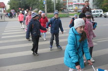 18 сентября 2014 года учащиеся начальной школы стали участниками ситуативно-ролевой игры "Я тоже участник дорожного движения!" Ребятам пришлось показать себя в роли активного пешехода на дороге. Девочки исполнили роль мам с колясками и сумками, мальчики передвигались на велосипедах, роликах, самокатах. Ученикам пришлось вспомнить как должен вести себя пешеход передвигаясь по дворовой територии, а также правила перехода по проезжей части. Игра прошла весело и поучительно, ученики с поставленной задачей справились. Удачи Вам на дорогах, юные пешеходы!