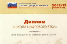 МБОУ "Гимназия №125" принимает участие в общероссийском проекте "Школа цифрового века". Педагоги и администрация гимназии получили дипломы за активное применение в работе современных информационных технологий, эффективное использование цифровых предметно-методических материалов.
