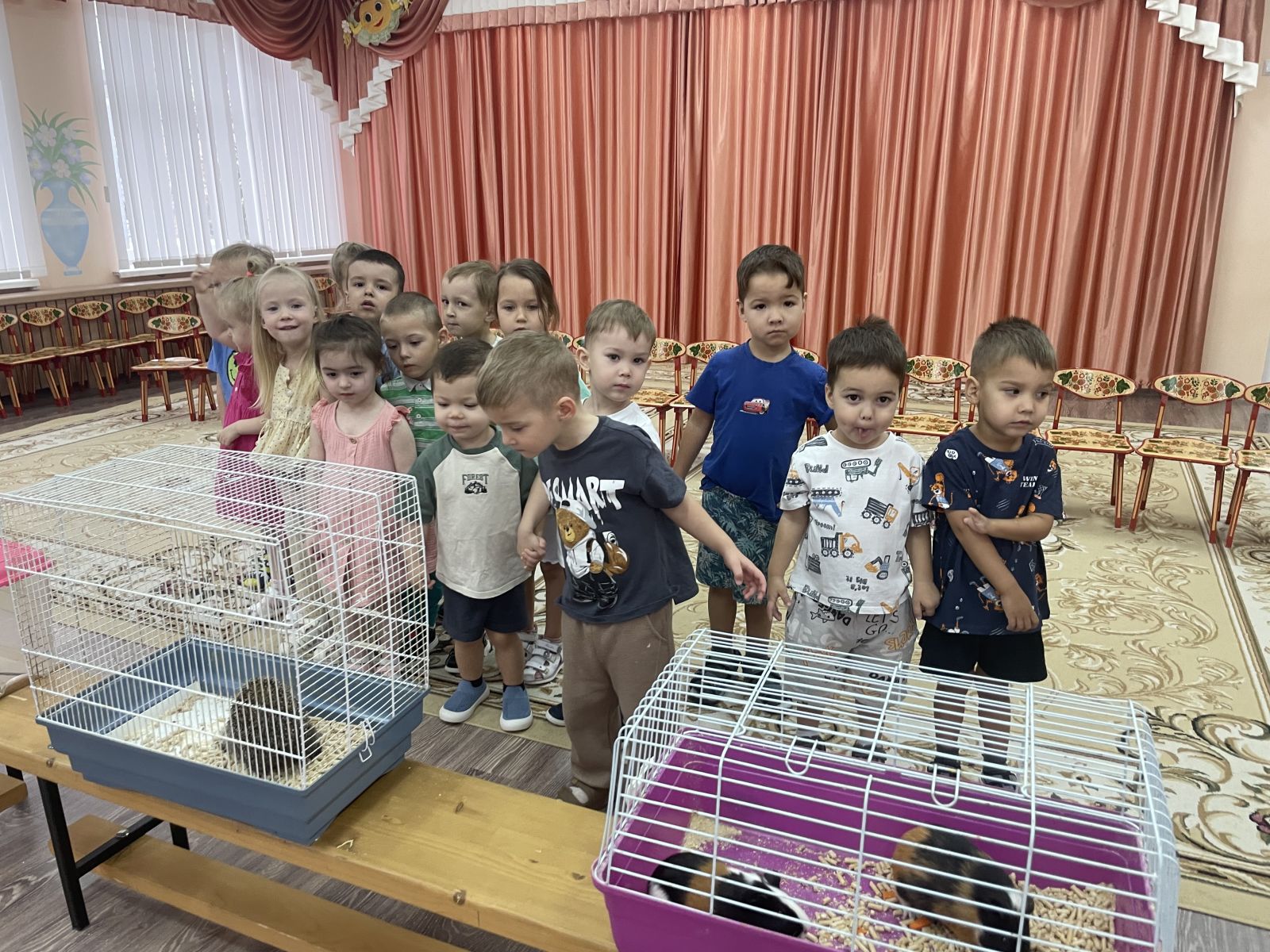 Путешествие в зоопарк увлекательное и познавательное мероприятие, которое помогает не только сформировать у ребёнка первые представления о животном мире, но и способствует формированию у него основ экологической культуры. С целью интереса у детей к животным, бережного отношения к ним, к дошколятам приехал контактный зоопарк. Чтобы попасть в зоопарк, не нужно было покупать билеты, а просто отгадать загадки. В игровой форме дети закрепили названия животных и их повадки. Малыши с удовольствием наблюдали за питомцами зоопарка, гладили их, слушали голоса. Звери оказались очень дружелюбными и весёлыми. Добрые звери попрощались с ребятами и пообещали вновь вернуться.