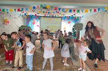 Ребята поговорили с ведущим о городах Татарстана, о их достопримечательностях. Очень пришлась на вкус национальная игра «Тюбетейка», а от конных скачек все пришли в восторг, так как удалось поиграть всем! В конце развлечения завели общий татарский хоровод.