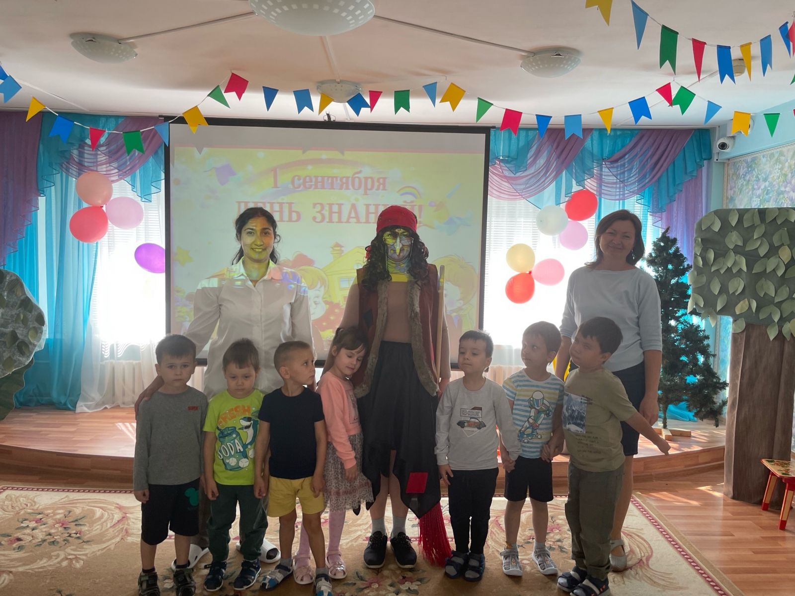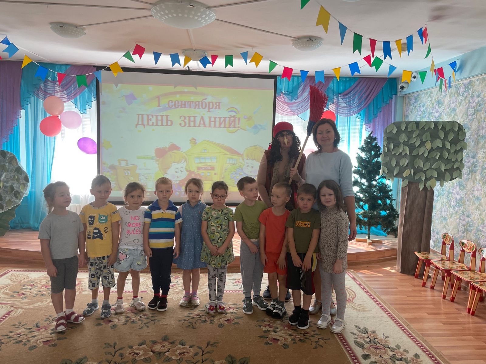 Удивительный и прекрасный праздник День знаний в детском саду, возможно, не такой торжественный и волнительный, как в школе, но от этого не менее важный. Начинается новая полоса в их жизни: занятия, беседы, праздники, помогающие лучше познать окружающий мир, чему-то научиться, узнать себя, определить свои интересы. В этот день для воспитанников детского сада педагоги устроили настоящий праздник. С Днём знаний воспитанников детского сада пришла поздравить сказочныей персонаж - Баба Яга! Дети вместе с гостями праздника участвовали в конкурсах, играх-соревнованиях, разгадывали загадки, пели песни, много шутили и смеялись. Вот так весело, интересно и празднично начался новый учебный год в нашем детском саду. Мы поздравляем всех – родителей, детей, педагогов с этим праздником! Этот день открывает новый учебный год. Пусть он будет увлекательным, интересным и принесет новые знания, открытия и новых друзей!