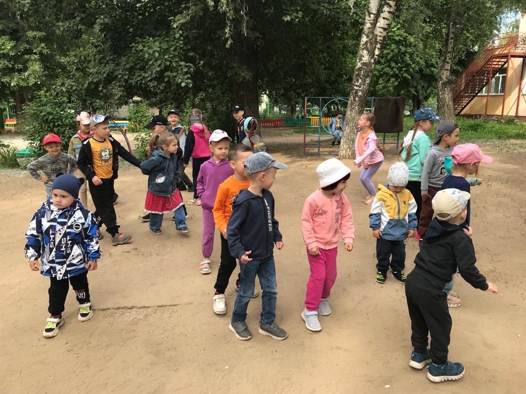 дети выполняем зарядку на улице, а значит – закаляются, укрепляют здоровье.