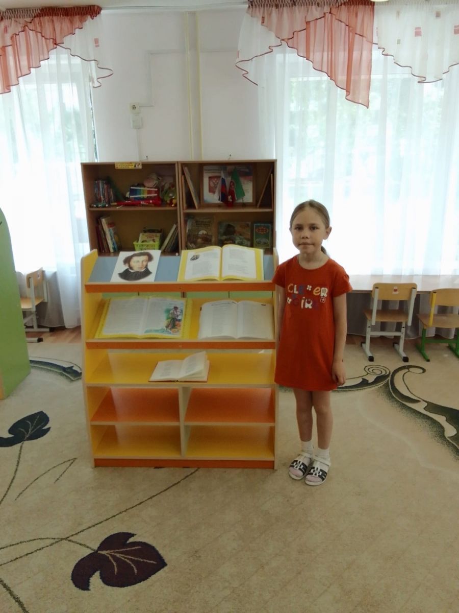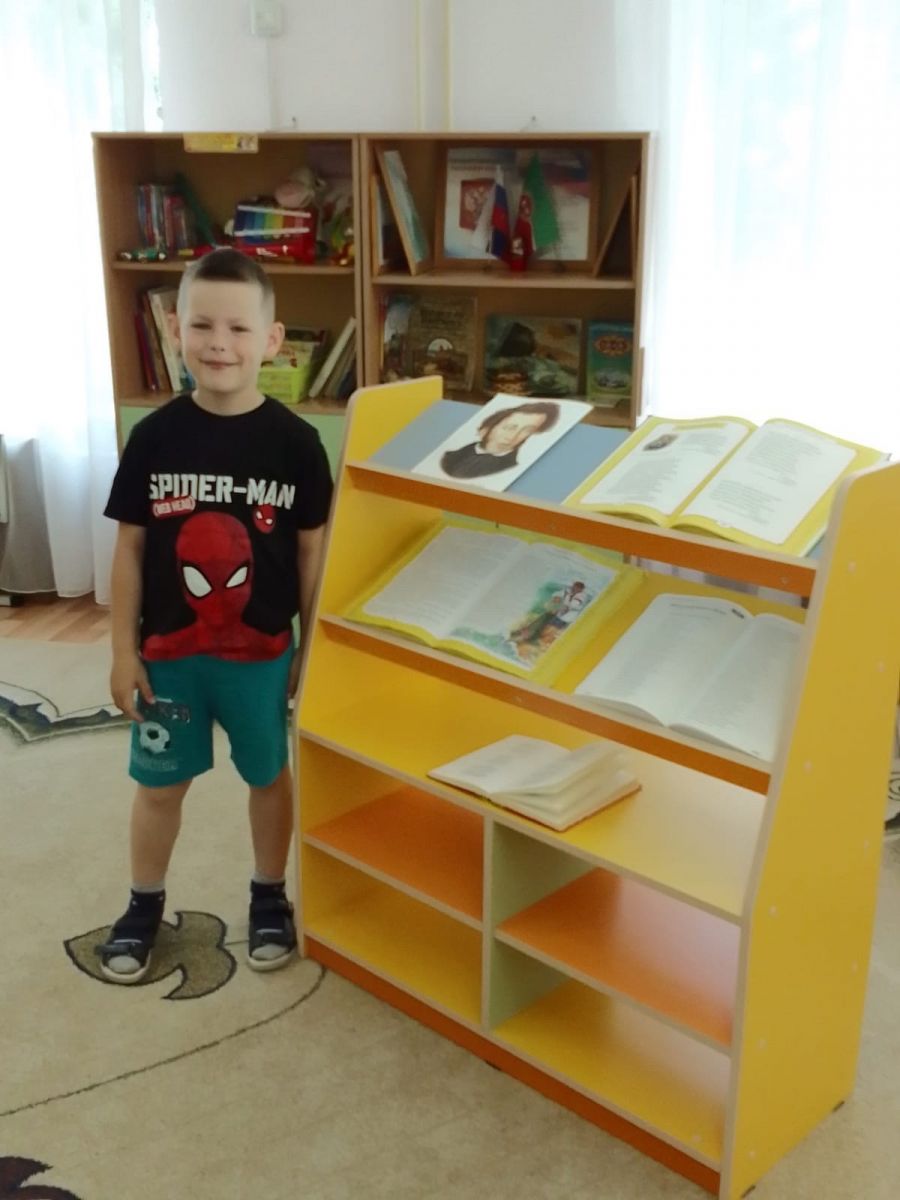 День А.С.Пушкина начался с выставки книг великого поэта, затем посмотрели иллюстрации из любимых сказок, а так же вспомнили строчки из известных произведений поэта. В конце устроили выставку детских работ "По страницам сказок Пушкина".