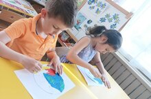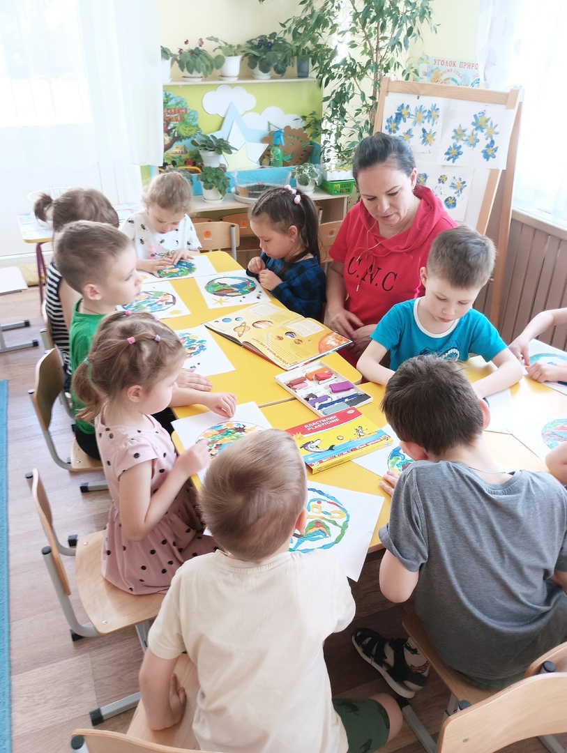 В старшей гр2 прошло рисованием с применением нетрадиционной техники (пластилинограффия) на тему: Планета-Земля.