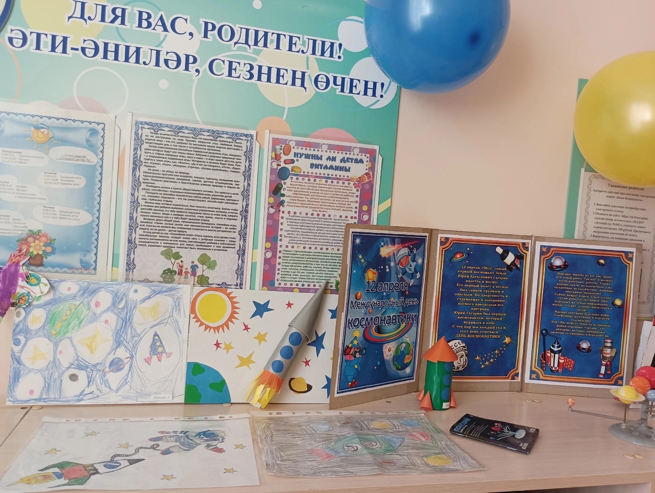 Выставка поделок и рисунков, посвященных Дню космонавтики
