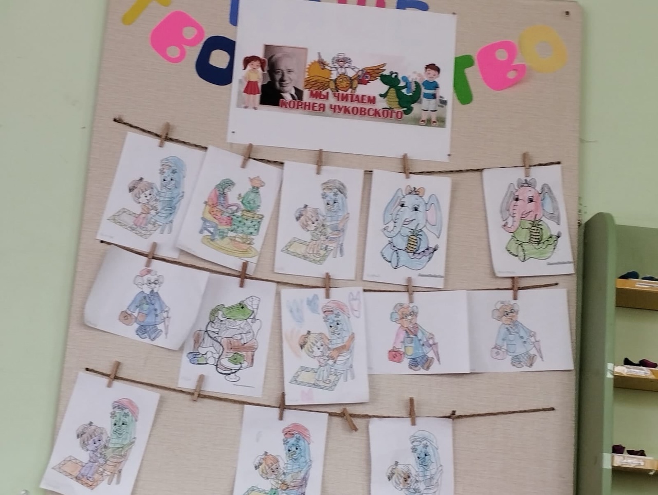 Стихи и сказки К.И.Чуковского знают и любят дети во всём мире. Они переведены на десятки языков, разобраны на сотни цитат. Чуковский создал свой особый мир и язык поэзии, присущей только ему.В произведениях Корнея Ивановича посуда убегает из дома, крокодилы гуляют по улицам, а добрый доктор летит в Африку спасать зверей и непослушных детей. В предверии этой даты во всех группах организованы выставки детских сказок писателя. Младшие дошкольники ближе познакомились с весёлыми и увлекательными сказками автора, с удовольствием рисовали любимых героев. Благодаря чудесным волшебным сказкам, маленькие дети получают представление о добре и зле, о том как устроен мир, учатся преодолевать свои страхи и всегда приходить на помощь тем, кто попал в беду. (Средняя группа)