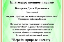 В марте т.г. педагогический коллектив и воспитанники детского сада приняли участие во Всероссийской экологической акции "Вернем природе чистоту!", организованной Центром гражданских и молодежных инициатив "Идея".