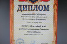 25 мая наш детский сад был награжден Сетрификатом активного участника мероприятий Всероссийской добровольной акции "Противопожарная безопасность", которая