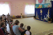 Сегодня в музыкальном зале детского сада в рамках недели "Сказочная" состоялся просмотр спектакля "Пашка Черепашка и дедушкина сказка" (театр кукол "Аленкины сказки", г.Казань).