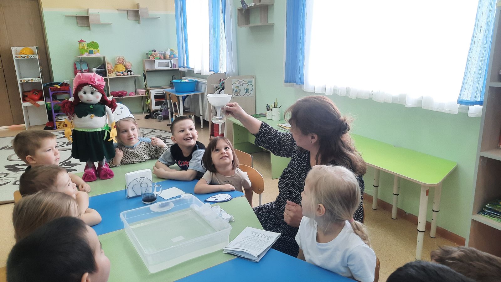 Также мы провели эксперимент по очистке воды, который показал, как важно беречь природные ресурсы и заботиться о чистоте окружающей среды. Ребята с удовольствием участвовали в этом процессе, наблюдая, как грязная вода становится чистой.