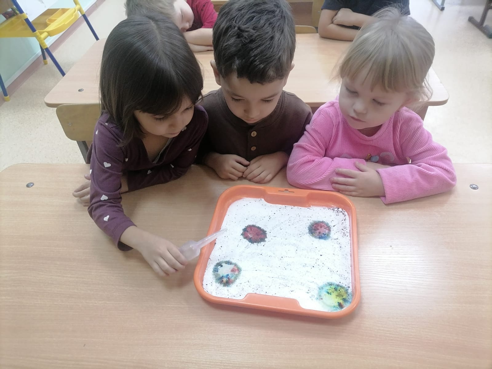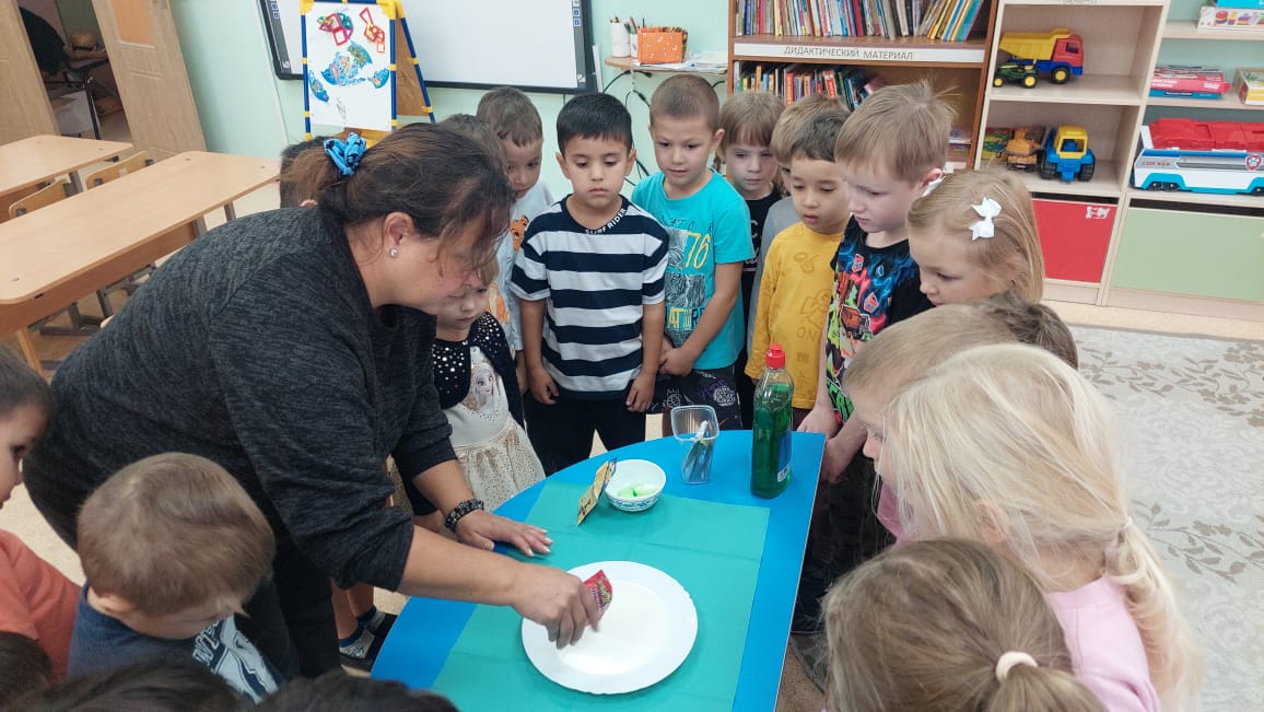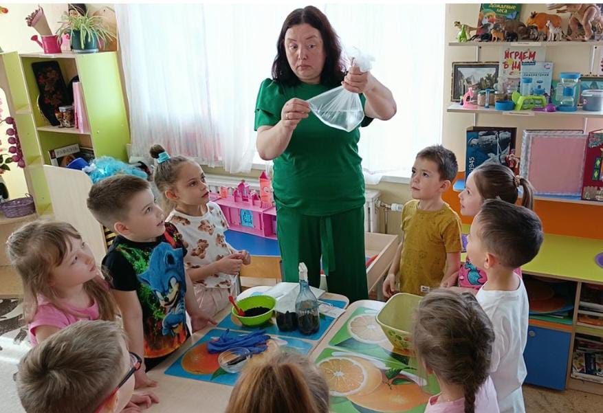 Не обошлось и без ярких экспериментов! Мы создали "цветные вулканы", которые продемонстрировали детям, как взаимодействуют разные вещества. Это было не только весело, но и познавательно, ведь дети узнали о химических реакциях и свойствах веществ.