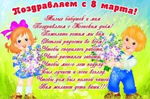 На этой предпраздничной неделе, в преддверии праздника - 8 марта, у нас прошли очень трогательные, нежные праздничные мероприятия. Мы увидели и танец маленьких цыплят и парад дефиле "Ах эта шляпка - весенний букет"и услышали красивые поздравления в адрес наших мам и бабушек, где даже зимняя льдинка таяла в руках ребят от ласковых слов и поздравлений. Желаем всем здоровья, счастья, пусть каждый день будет наполнен теплом, светом и разноцветием ./upload/storage/org6413/files/8 марта.jpg