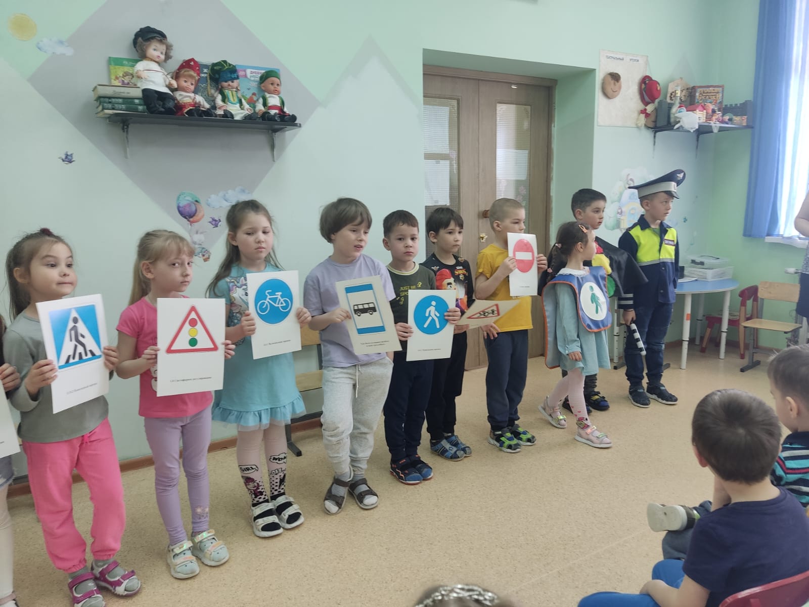 Сегодня дети подготовительной группы пришли к малышам рассказать о дорожных знаках  и правилах поведения на улицах и дорогах города