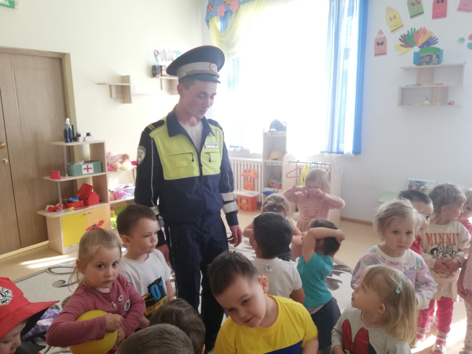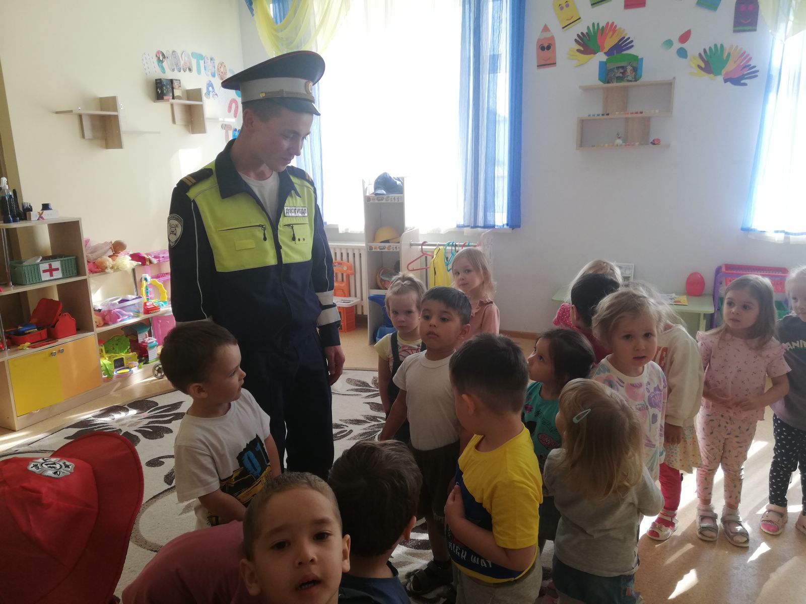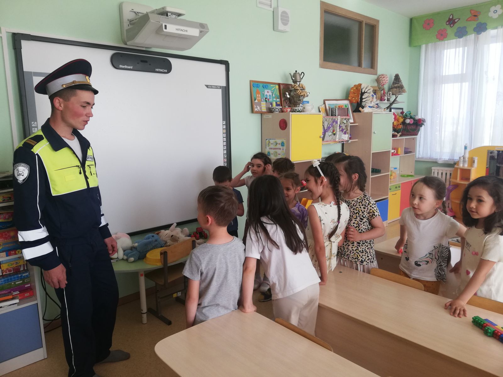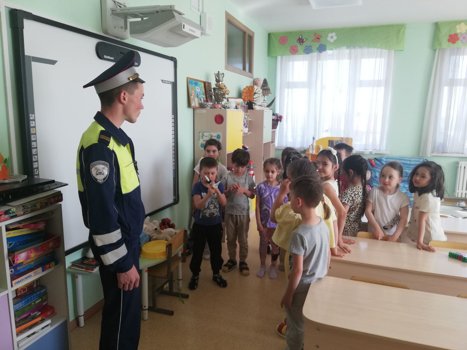 В нашем детском саду, вопросу безопасности детей на улицах и дорогах уделяется большое внимание. 19 мая в гостях у воспитанников старшей группы №6 и второй младшей группе №1   инспектор ГИБДД. Целью этой встречи было закрепление знаний о правилах дорожного движения, профилактика детского дорожно-транспортного травматизма.