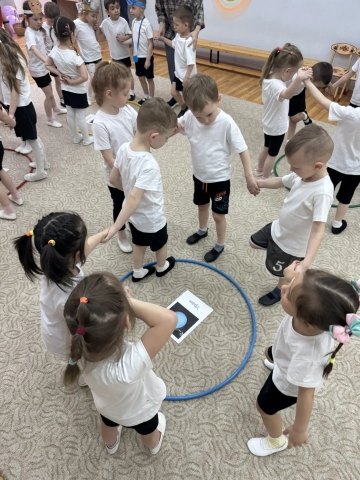 В средней группе состоялись спортивные соревнования, где дети соревновались в эстафетах и конкурсах, имитирующих космические путешествия. Это помогло развить у детей ловкость, выносливость и командный дух.