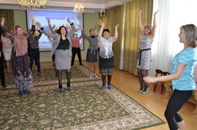 Флешмоб с участниками семинара-практикума на тему: "Интеграция образовательных областей в рамках проекта "Казань - спортивная столица!" Слушатели республиканских КПК - руководители ДОУ. Организатор - инструктор по физической культуре Мухаметова Н.В.