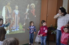 Приобщение к истокам родного края, воспитание толерантности, нравственных качеств должны стать неотъемлимой частью души ребенка, началом, порождающим личность. На занятии "Веселый хоровод", в рамках проекта "Наш дом - Россия", воспитатель по обучению татаскому языку Шайдаева Л.Н. знакомила детей с народными костюмами, играми и танцами народов Поволжья.