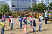 В рамках проекта "Наш дом - Россия", воспитатель Ситдикова А.Н. проводила с детьми различные подвижные игры и игры-эстафеты.