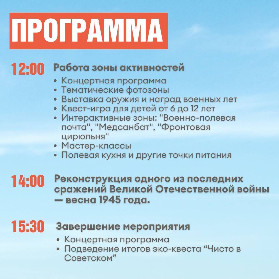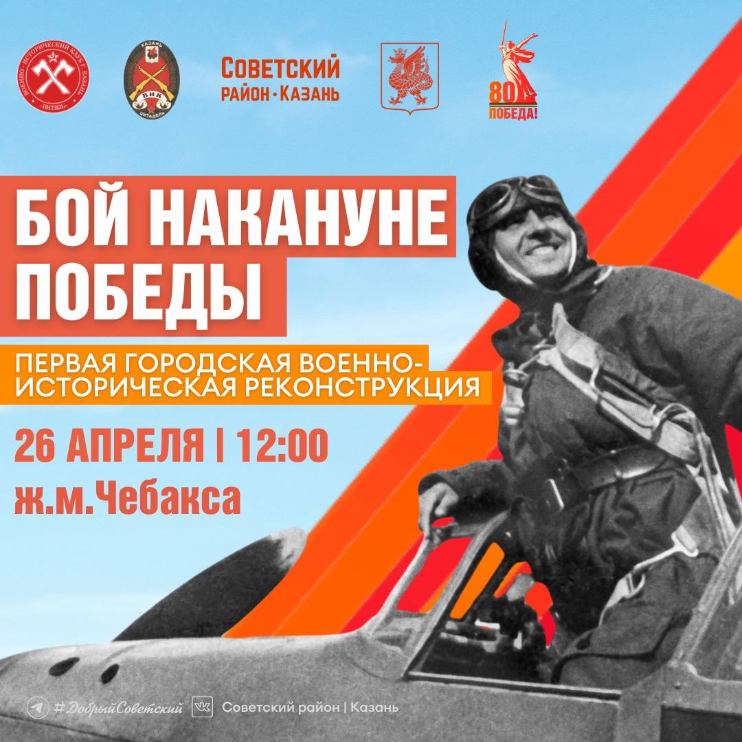 В субботу, 26 апреля, в поселке «Чебакса» пройдет масштабное и зрелищное событие, приуроченное к празднованию 80-летия Победы в Великой Отечественной войне — реконструкция реальных боев с участием пехоты, бронетехники и пиротехники. Начало в 12.00.