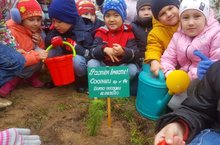 На территории детского сада воспитанники старших и подготовительных групп высадили десять саженцев молодых сосенок!