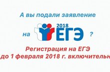 Федеральная служба по надзору в сфере образования и науки напоминает, что заявление на участие в ЕГЭ 2018 года необходимо подать до 1 февраля (включительно). В заявлении должны быть перечислены предметы, по которым участник планирует сдавать ЕГЭ.