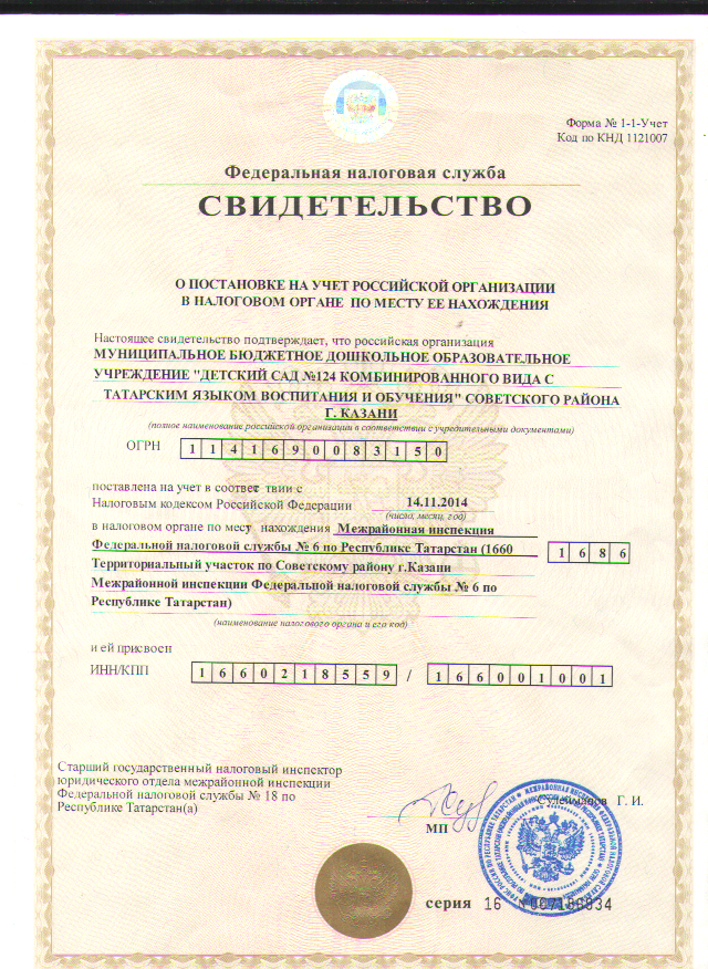 Свидетельство о постановке на учет российской организации в налоговом органе