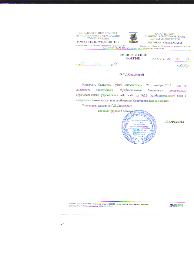 Муниципальное бюджетное дошкольное образовательное учреждение «Детский сад №124 комбинированного вида с татарским языком воспитания и обучения» Советского района г.Казани
