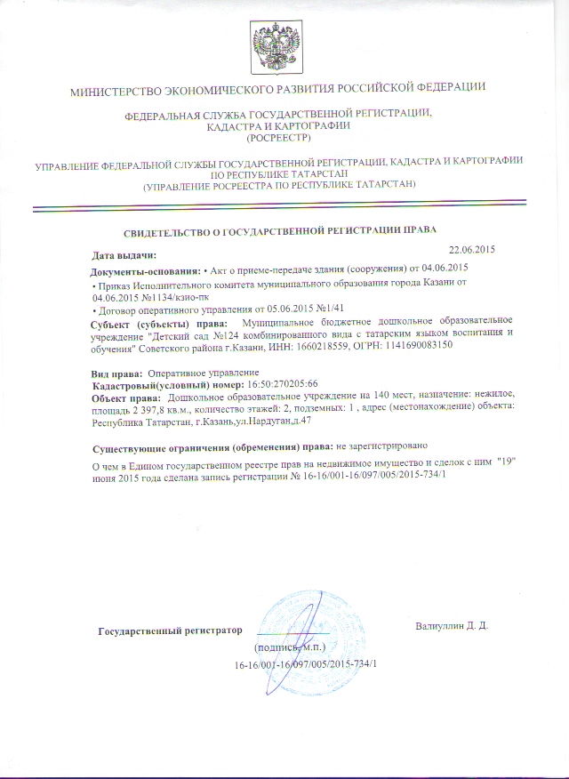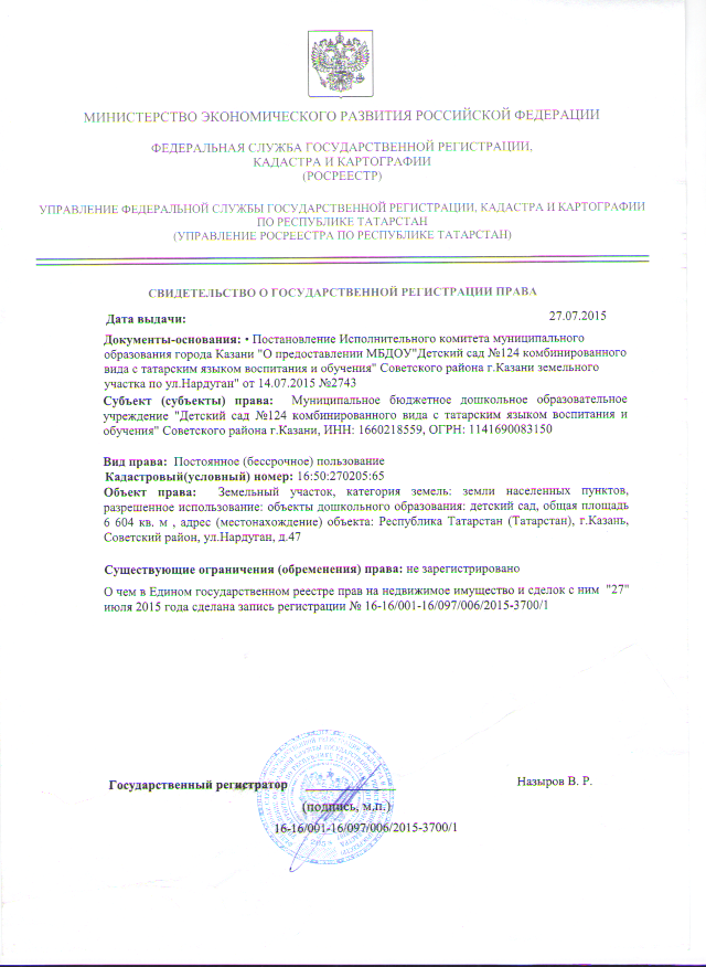 Свидетельство о государственной регистрации права детского сада