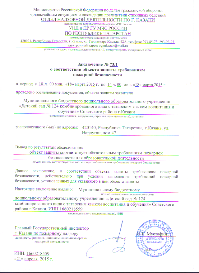 Заключение о соответствии объекта защиты требебования пожарной безопасности