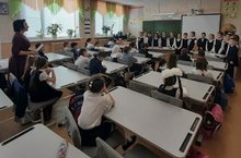 Сегодня после традиционной линейки и выноса государственных флагов Российской Федерации и Республики Татарстан в 1-11 классах прошли классные часы из цикла "Разговоры о важном", посвященные прорыву блокады Ленинграда.