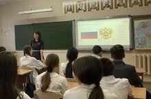 Бүген, 28 нче ноябрь көнне, традицион линейка узды һәм Россия Федерациясе һәм Татарстан Республикасы Дәүләт флаглары күтәрелде. 1-11 нче сыйныфларда "Мөһим турында сөйләшү" циклыннан түбәндәге темаларга сыйныф сәгатьләре узды: "Безнең илдә нинди символлар бар?", "Герб безгә нәрсә әйтә ала?", "Россиянең символлары".
