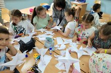 Сегодня, 15 июня, дети пришкольного лагеря выехали с экскурсией в «КидСпейс – город профессий». Там они познакомились с разными видами профессий. Данное мероприятие было очень интересно. Далее в отрядах прошел конкурс оригами .
