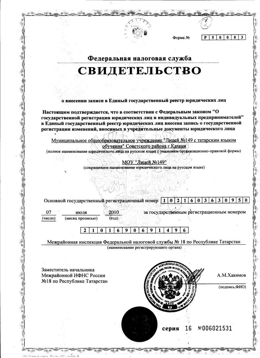 СВИДЕТЕЛЬСТВО о внесении в Единый государственный реестр юридических лиц