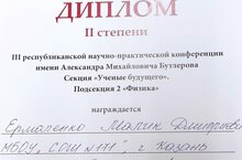 Учёный будущего, Малик Ермоленко, занял 2 место на научно-практической конференции имени А. М. Бутлерова, подсекция "Физика" .