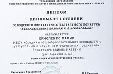 Ермоленко Малик, ученик 5Г класса стал дипломантом 1 степени в городском литературно-театральном конкурсе "Вдохновлённые Н. А. Некрасовым"