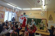 Сегодня в каждый класс начальной школы зашли Дед Мороз со Снегурочкой и героями сказок, поздравили ребят, каждому ребёнку лично вручили подарки, ребята рассказали стихи, спели песни, станцевали с Дедом Морозом. Дети были в восторге!!!