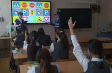 В рамках профилактического мероприятия "День безопасности дорожного движения" отряд инспекторов дорожного движения выступил с творческой программой, посвященной правилам поведения на дорогах, в игровой форме напомнил школьникам основные правила.