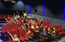 Сегодня нас ждал кинотеатр Корстон! Сделав веселую зарядку и вкусно подкрепившись в школьном ресторане , мы отпраились в путь. "Барбоскины нат даче" всем очень понравились!
