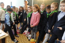 Учащиеся начальной школы с 1 - 4 классы помогли оформить красивую выстаку для конкурса кулинарный базар «Лукошко рецептов - 2016»
